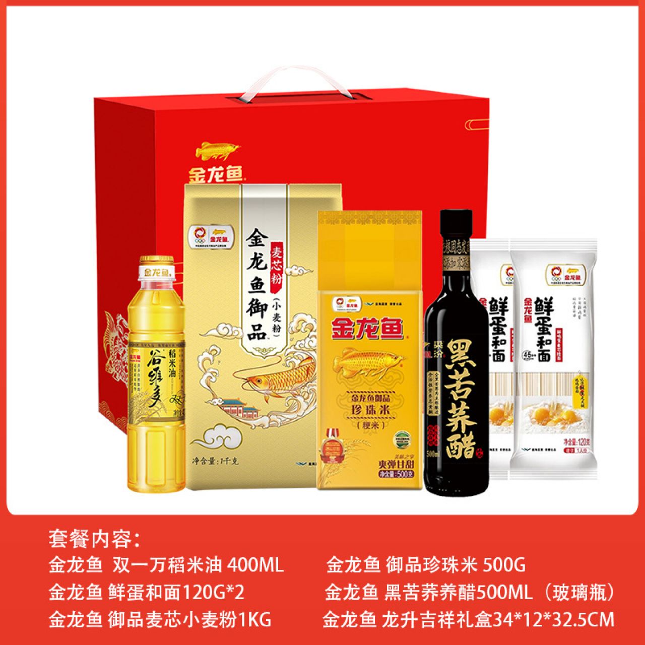 • 金龙鱼米面油套餐礼盒50元档 调味杂粮宣传促销品集采婚庆拌