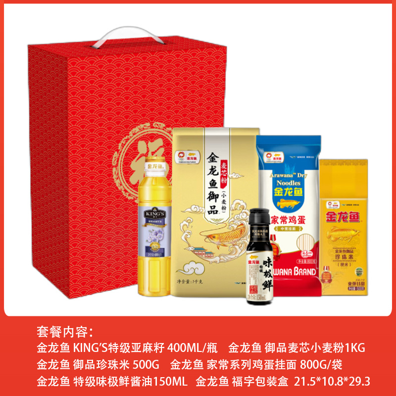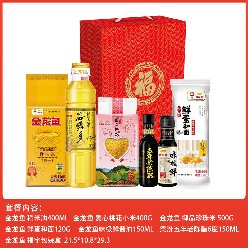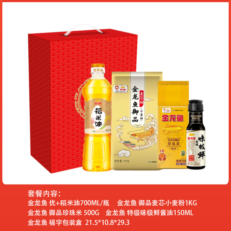 • 金龙鱼米面油套餐礼盒50元档 调味杂粮宣传促销品集采婚庆拌